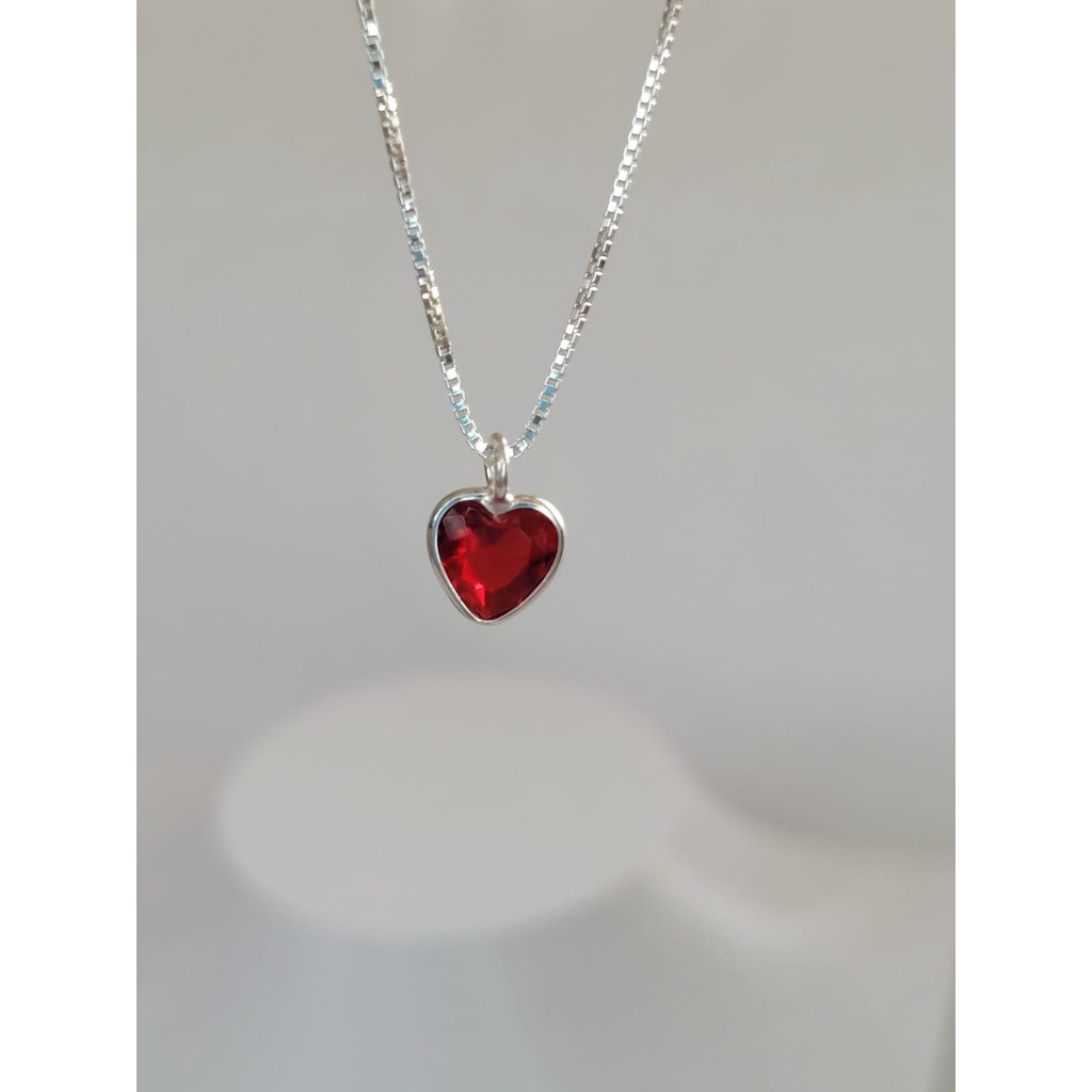 Colar coração ponto de luz vermelho rubi 40cm