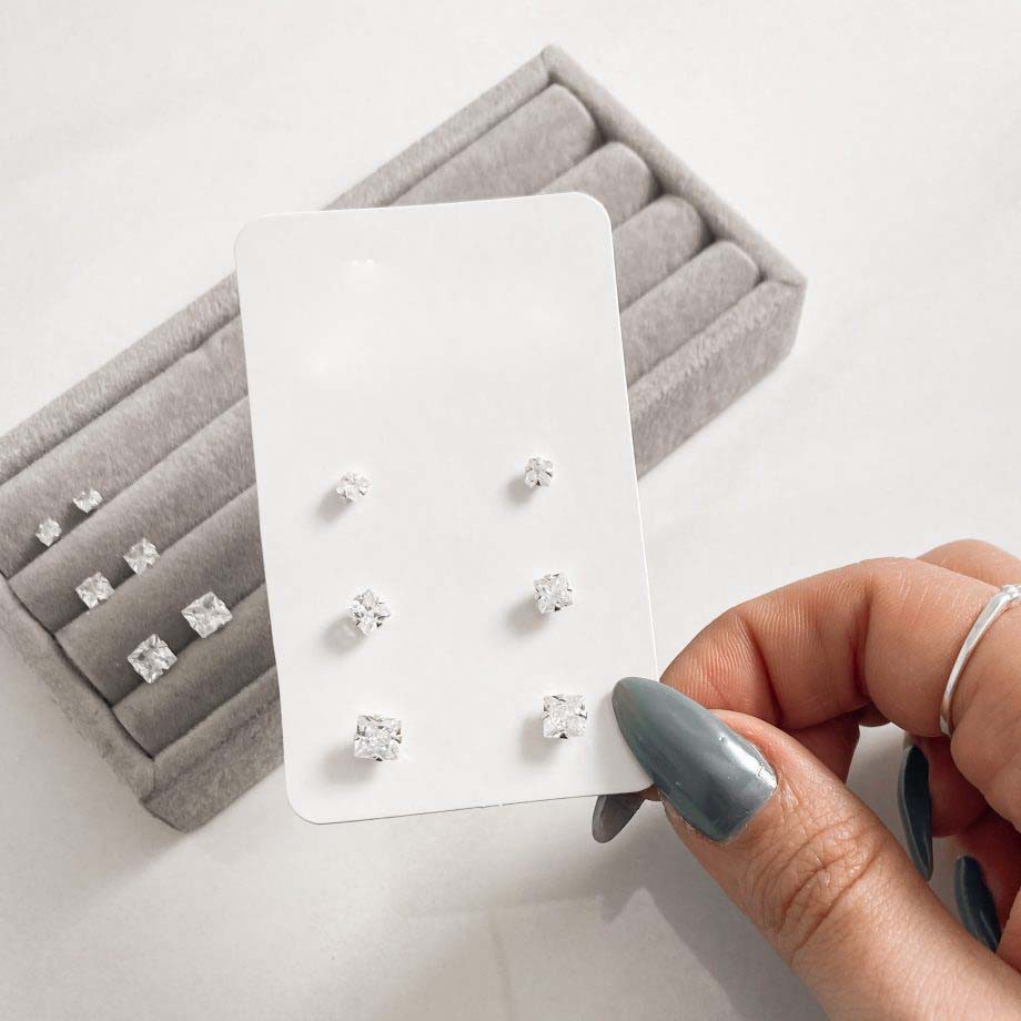 Brinco trio zircônia quadradas